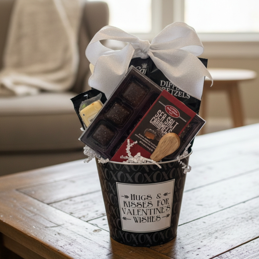 Send a little love—sweet, savory, and beautifully curated. The Hugs & Kisses Gift Bucket is a charming Valentine’s Day (or anytime) gift that brings people together over irresistible flavors. Thoughtfully arranged in a festive keepsake container, this gift blends classic snacking favorites with indulgent treats, making it perfect for sharing, celebrating, or simply savoring the moment.