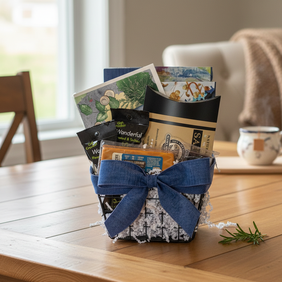 Our Savory Snack Gift Basket is a thoughtfully curated assortment designed for those who appreciate rich, satisfying flavors with a touch of indulgence. This gift brings together premium smoked salmon, cheese, crisp crackers, seasoned pretzels, roasted pistachios, and chocolate-covered popcorn for the perfect balance of savory and sweet. A pair of chocolates adds a decadent finishing touch, while a salmon dip recipe card invites the recipient to create an elevated appetizer at home. Ideal for client gifting, thank-yous, celebrations, or sharing during gatherings, this basket delivers a refined snacking experience that feels both generous and memorable.